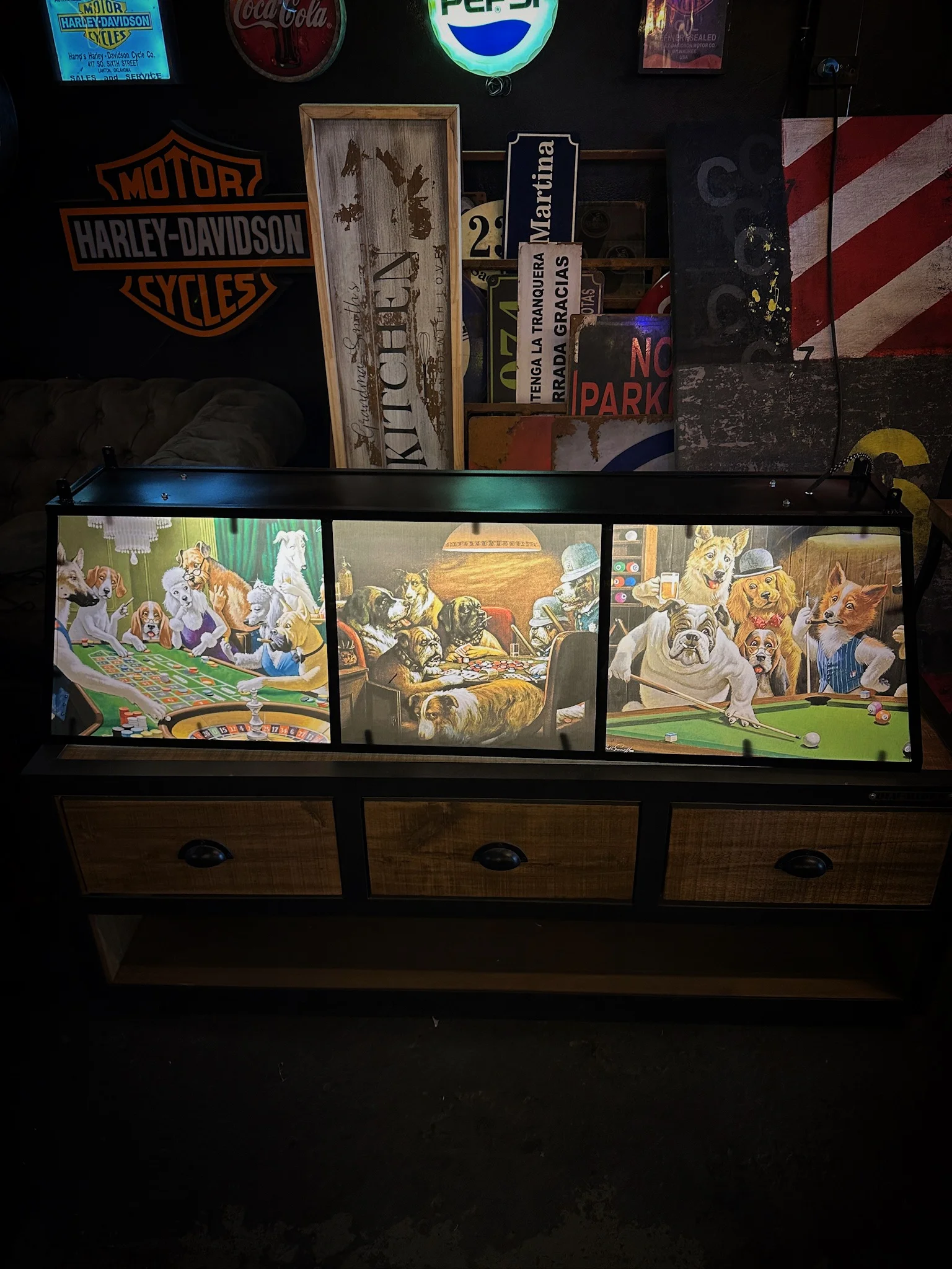 Bar table de perrros jugando al poke, diseños personalizados.