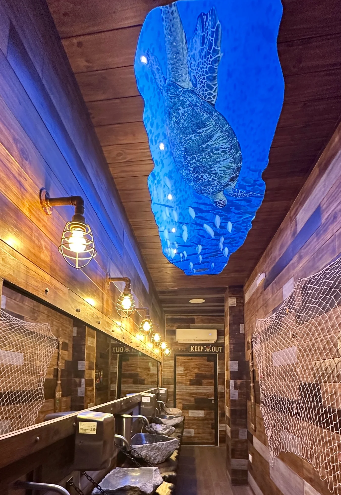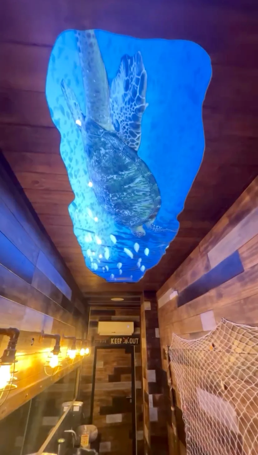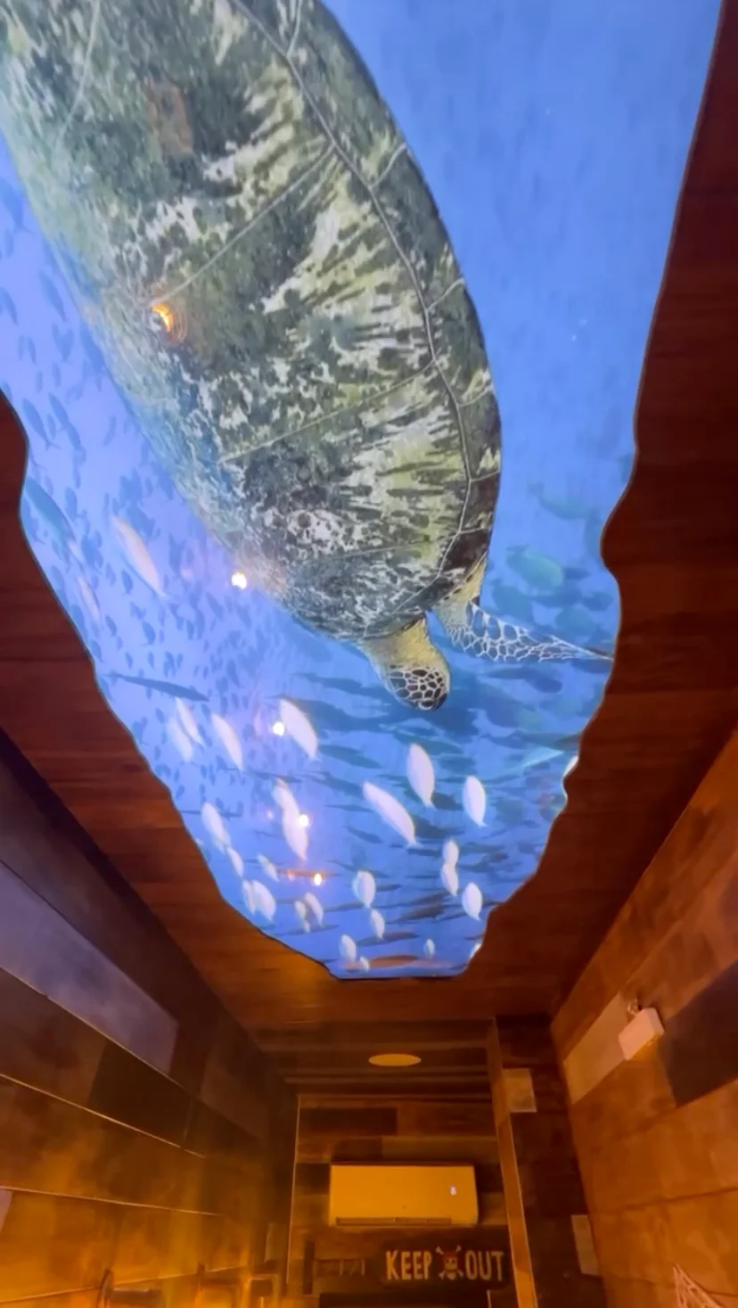 Backlight de techo de peces y tortugas, hehco para bar tiki a pedido y a medida.