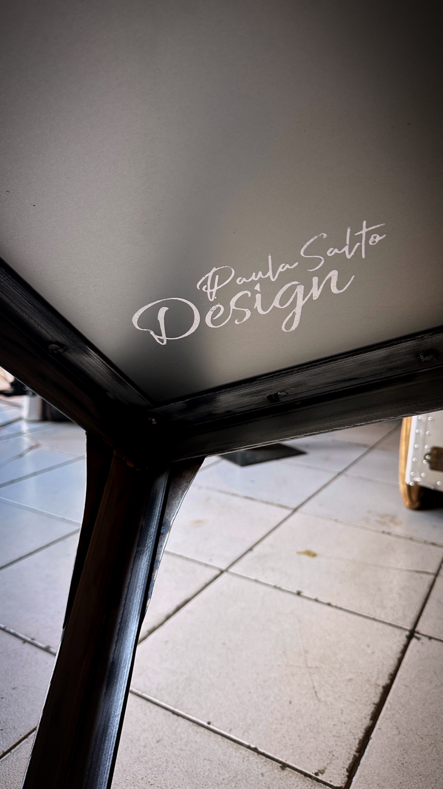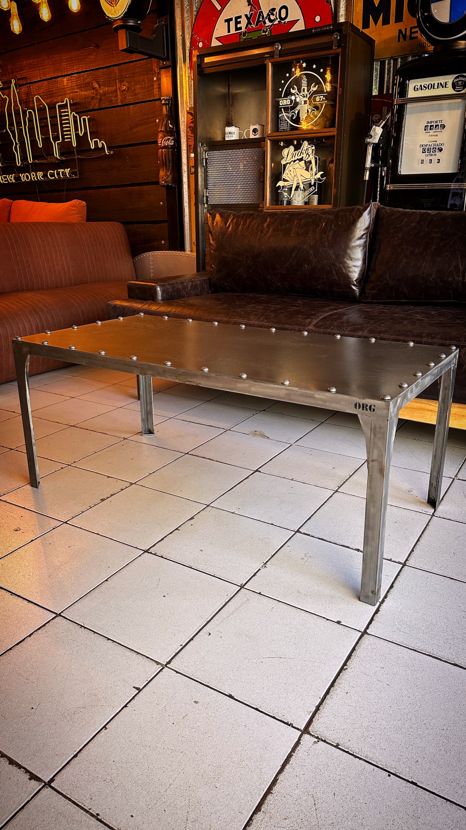 mesa ratona XX totalmente en acero + laqueado transparente color + tachas grande