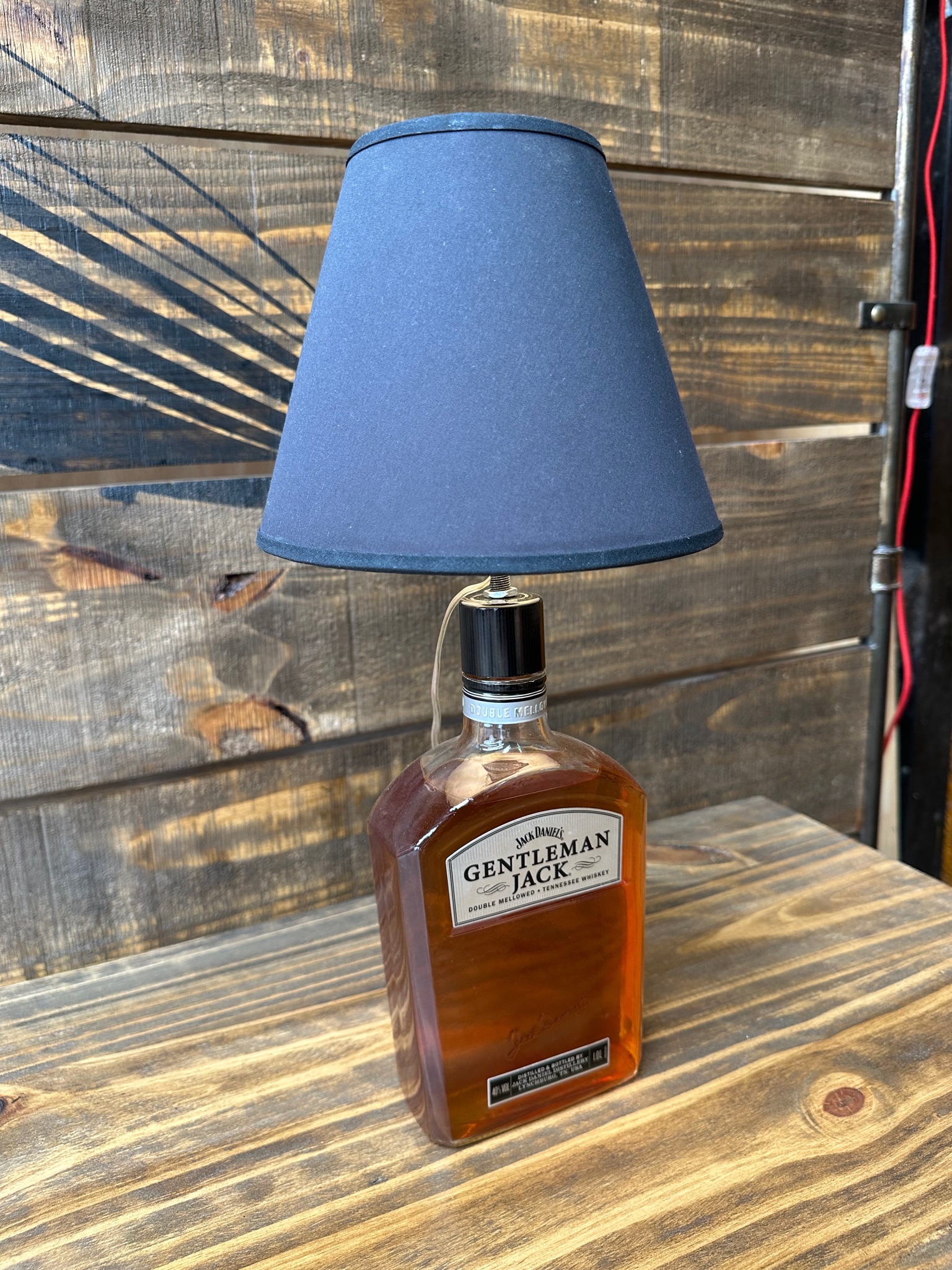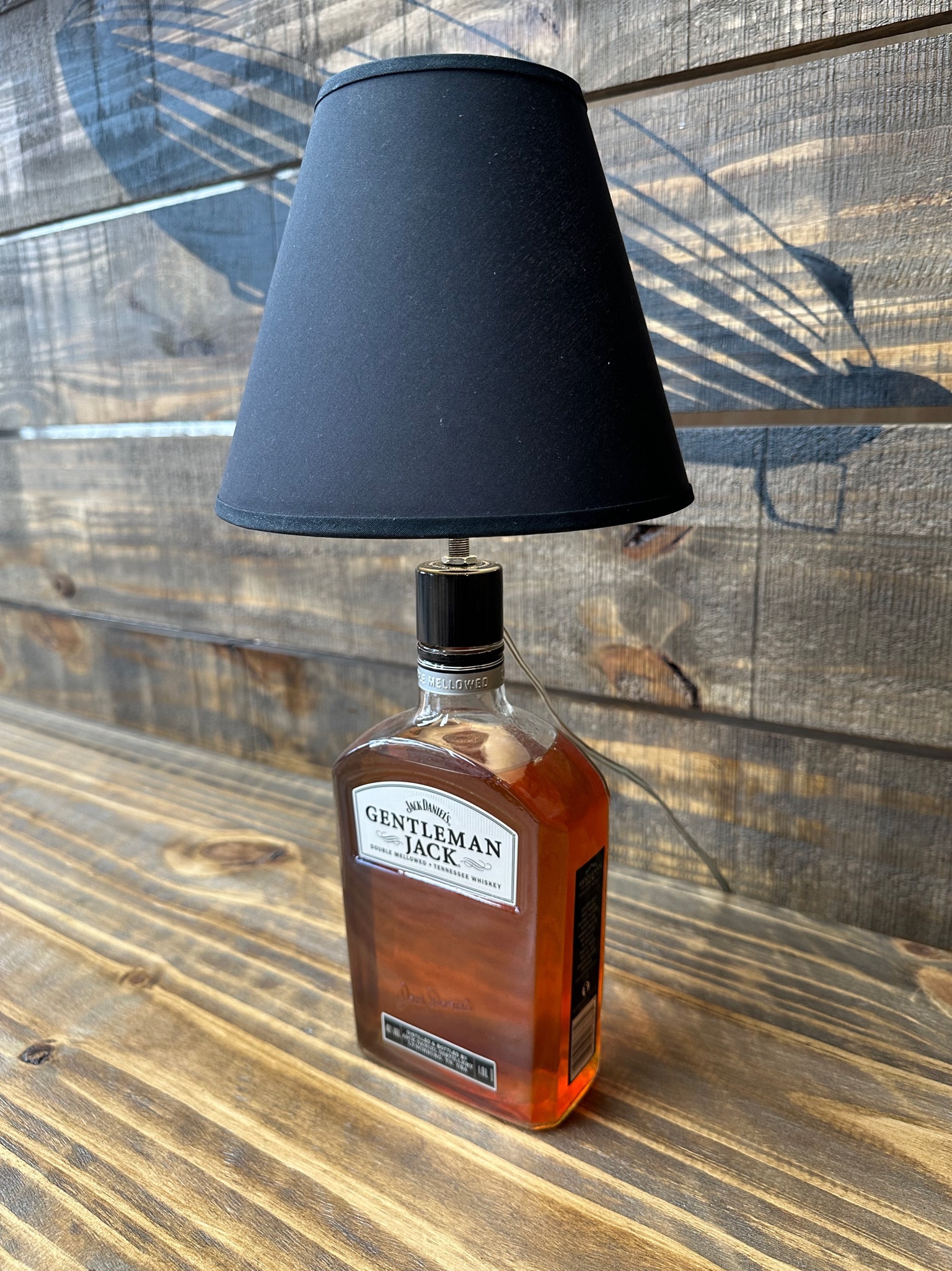 Lampara hecha con botella de vidrio Jack Daniel´s.