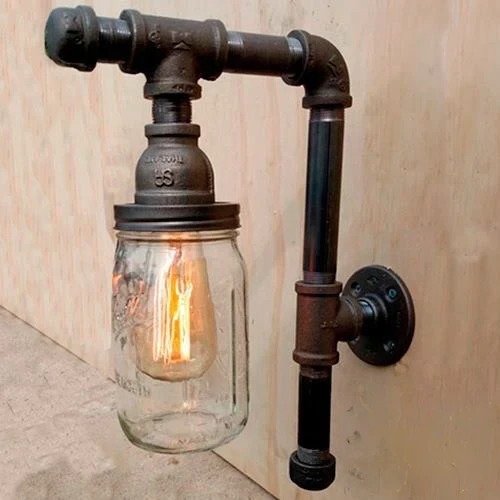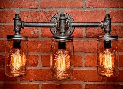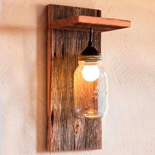 Lampara vintage con frascos en caño o madera, totalmente personalizable!