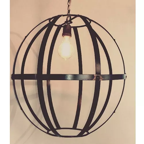Jaulas colgantes de hierro con formas esféricas, terminación oxid. Modelos y estilos personalizados.