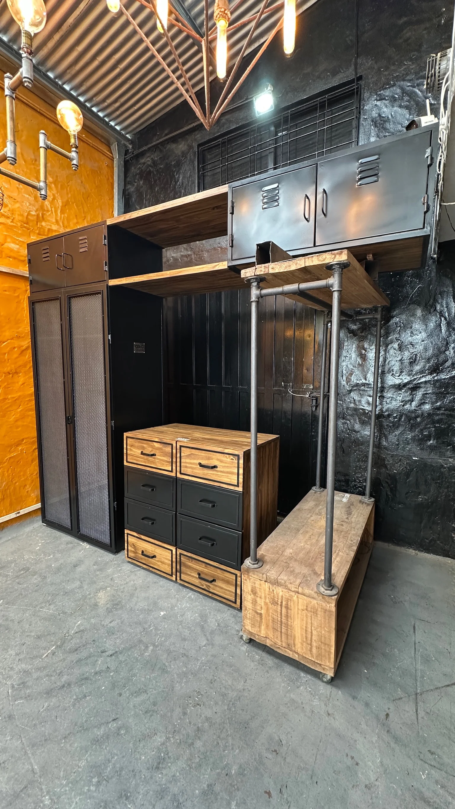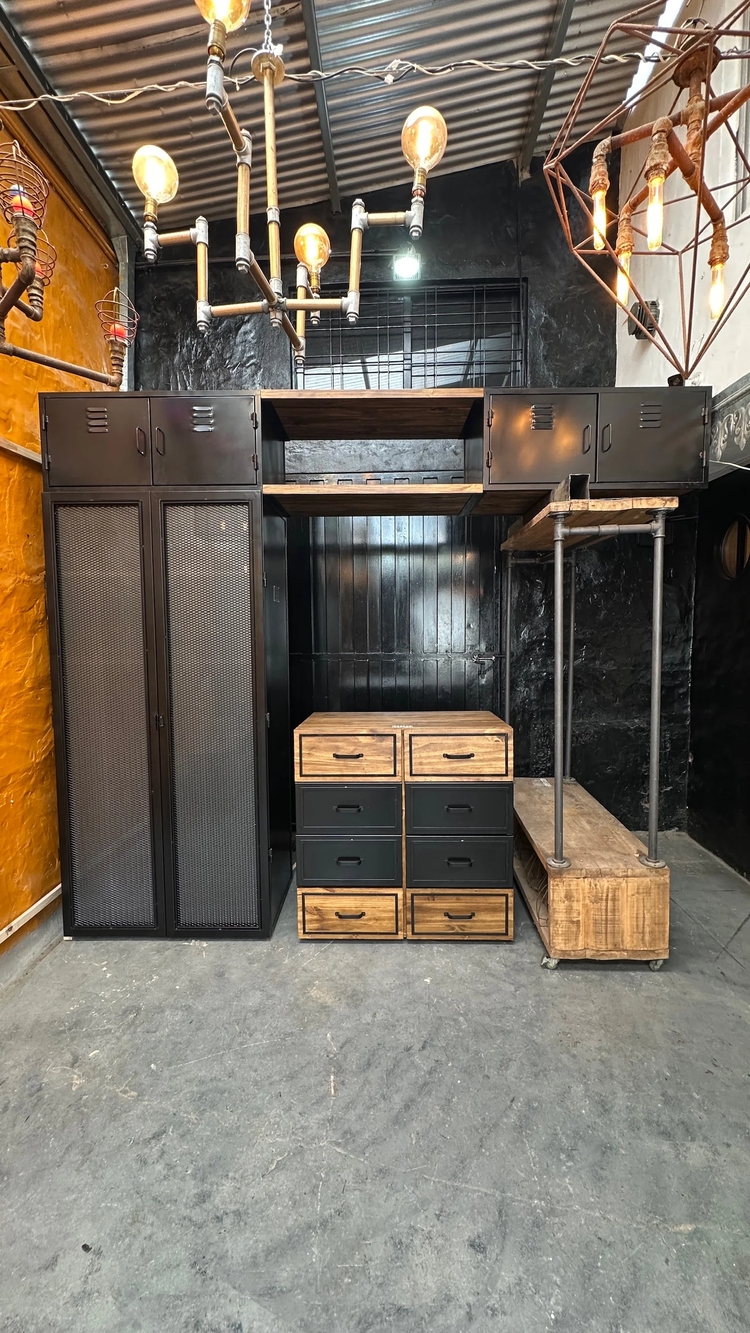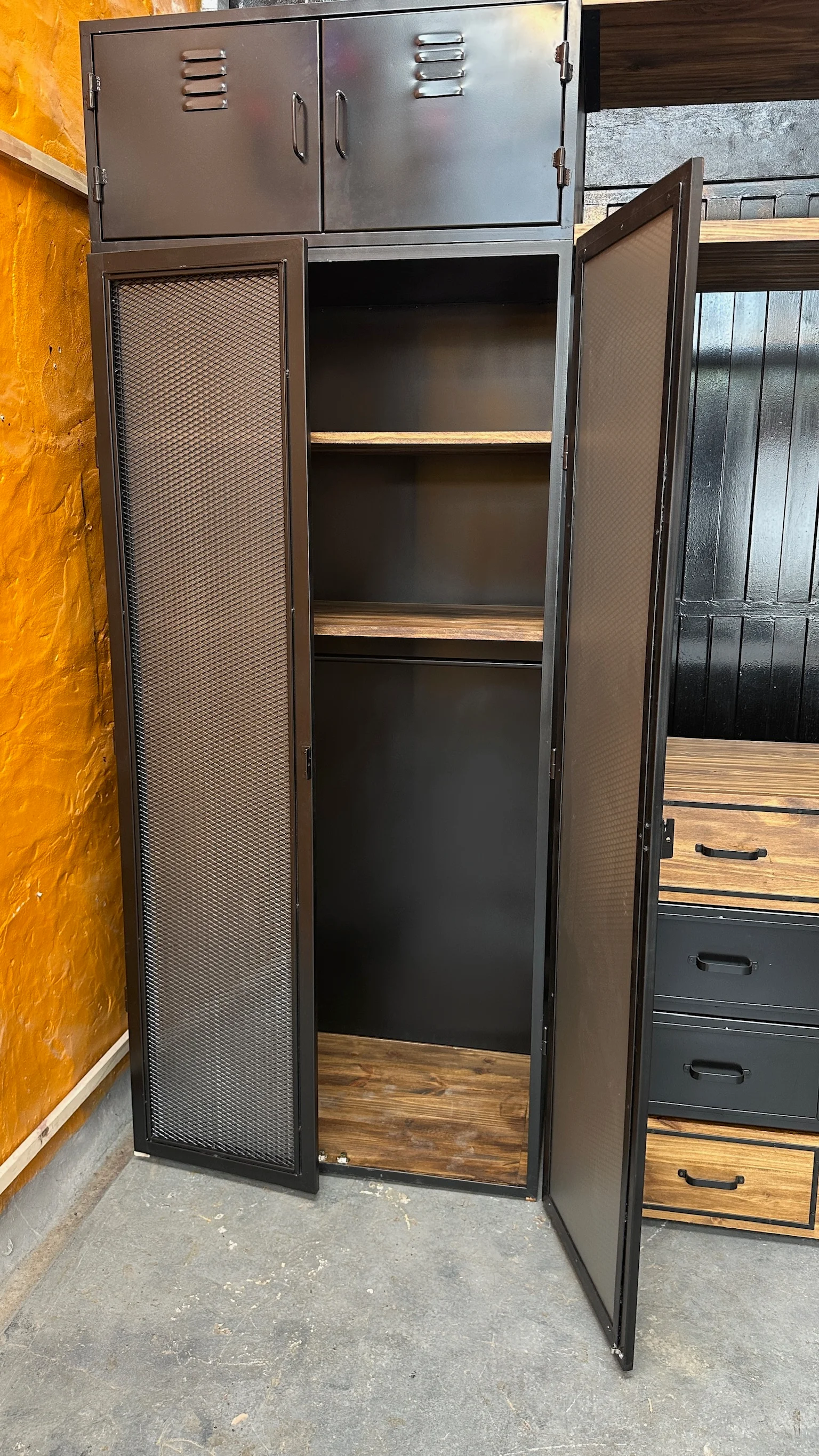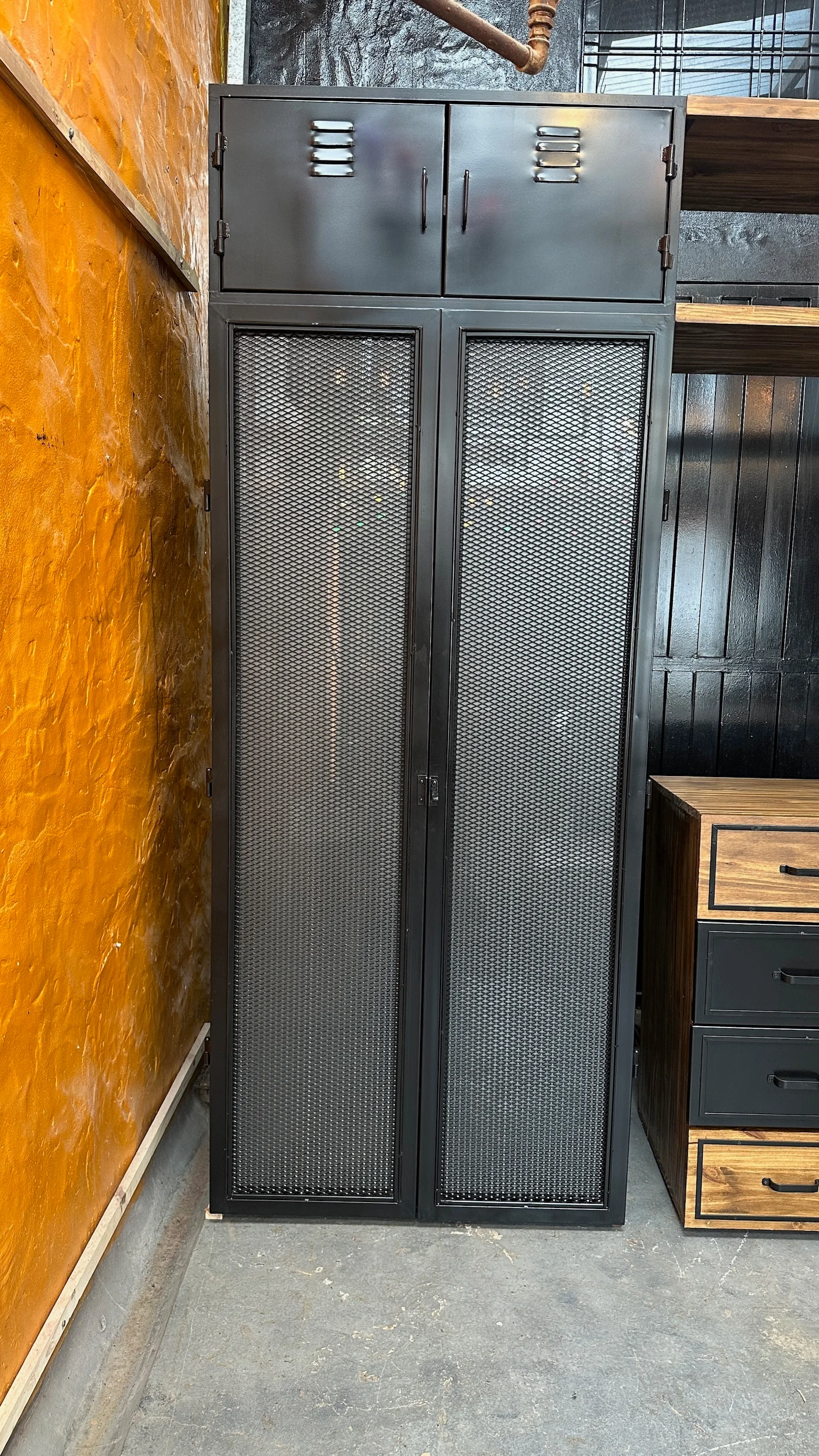 locker con puertas de metal desplegado y vidrio esmerilado