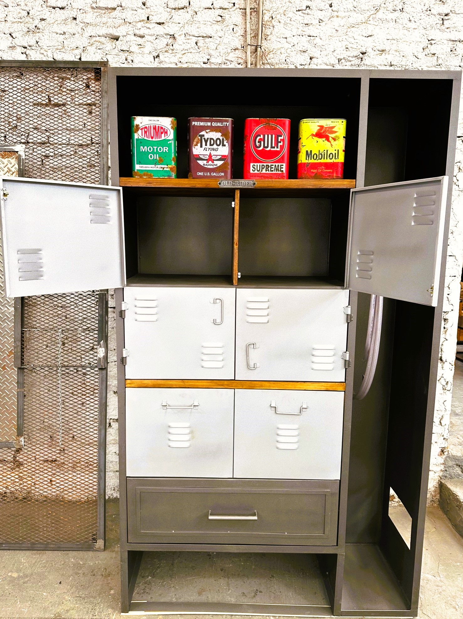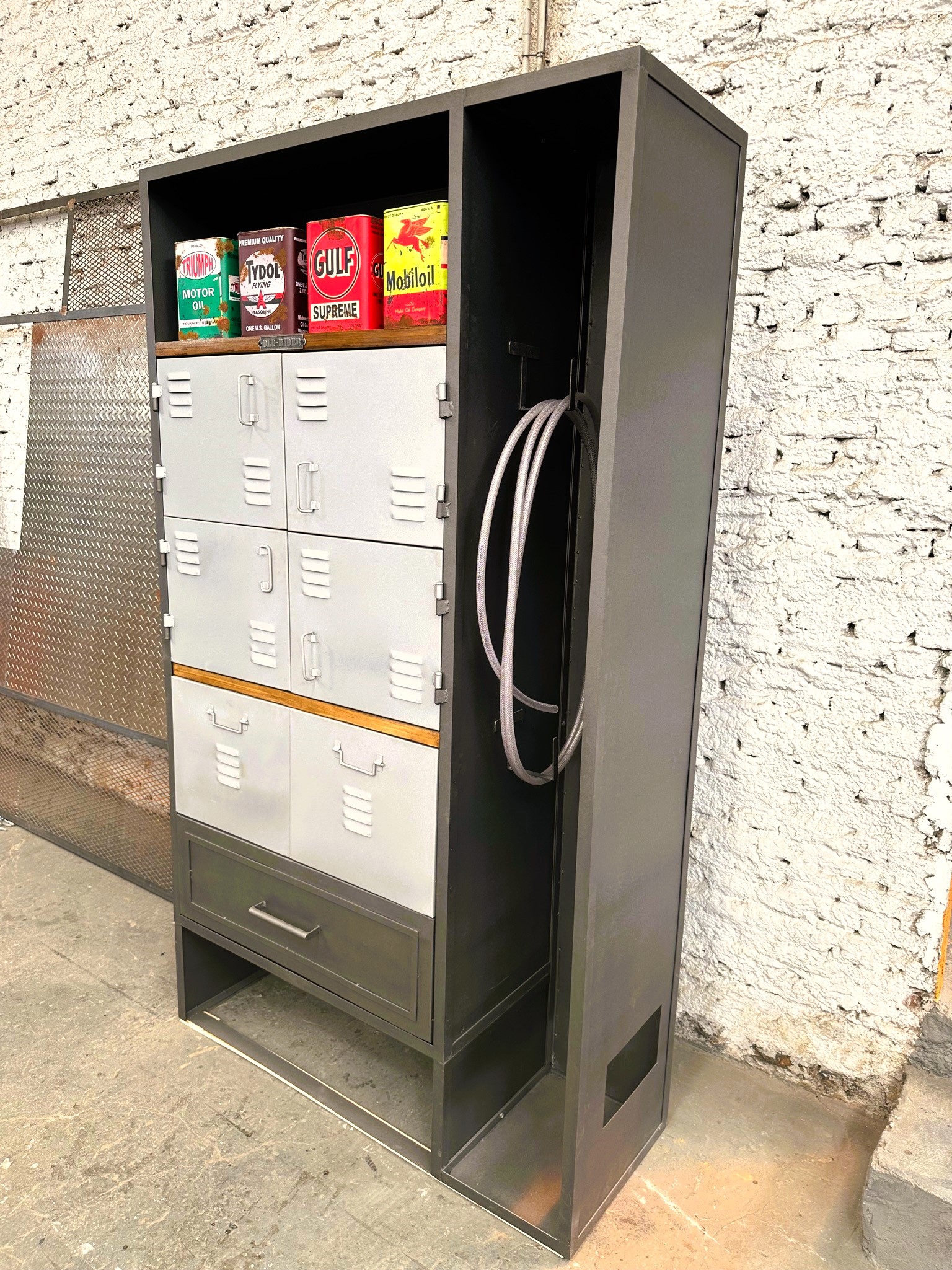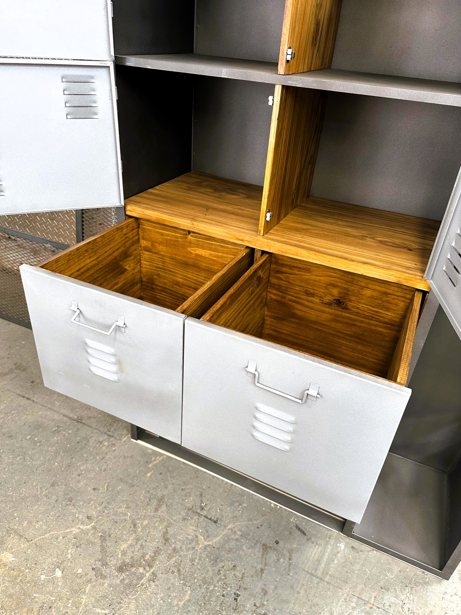 Mueble estilo locker con cajones y puertas. Para multiespacios y multiusos.