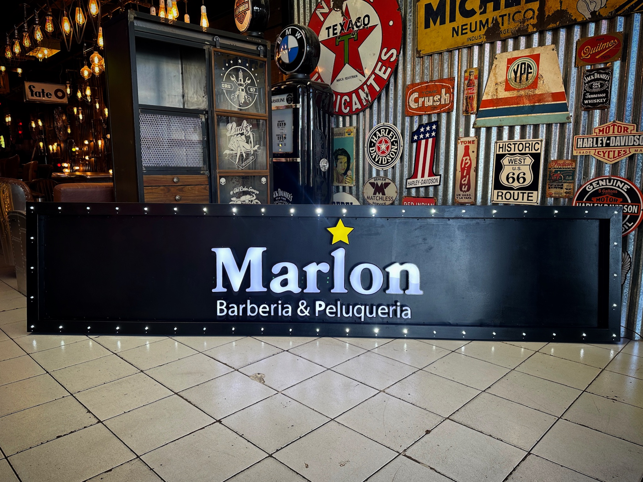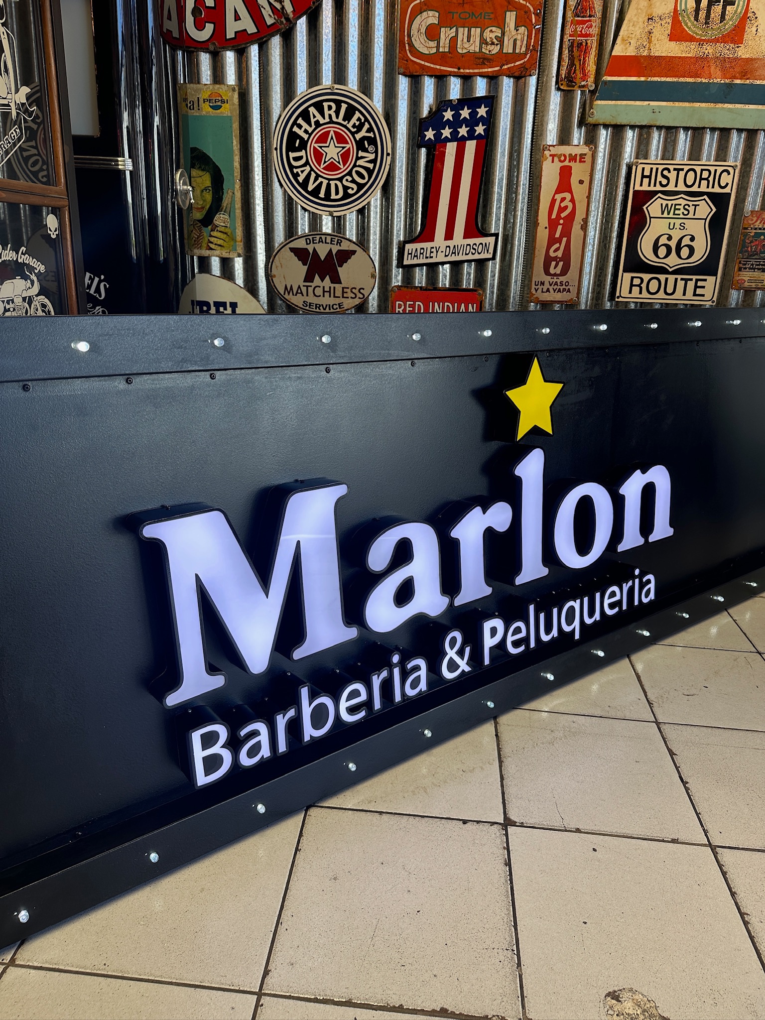 Marquesina con letras corporeas y marco con luces led intermitenes.