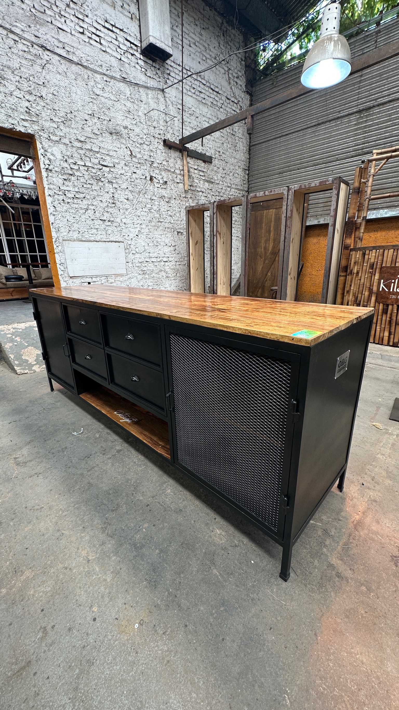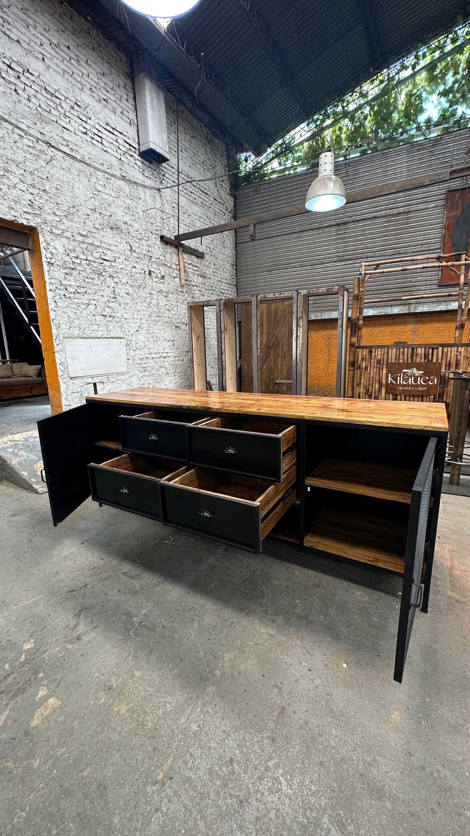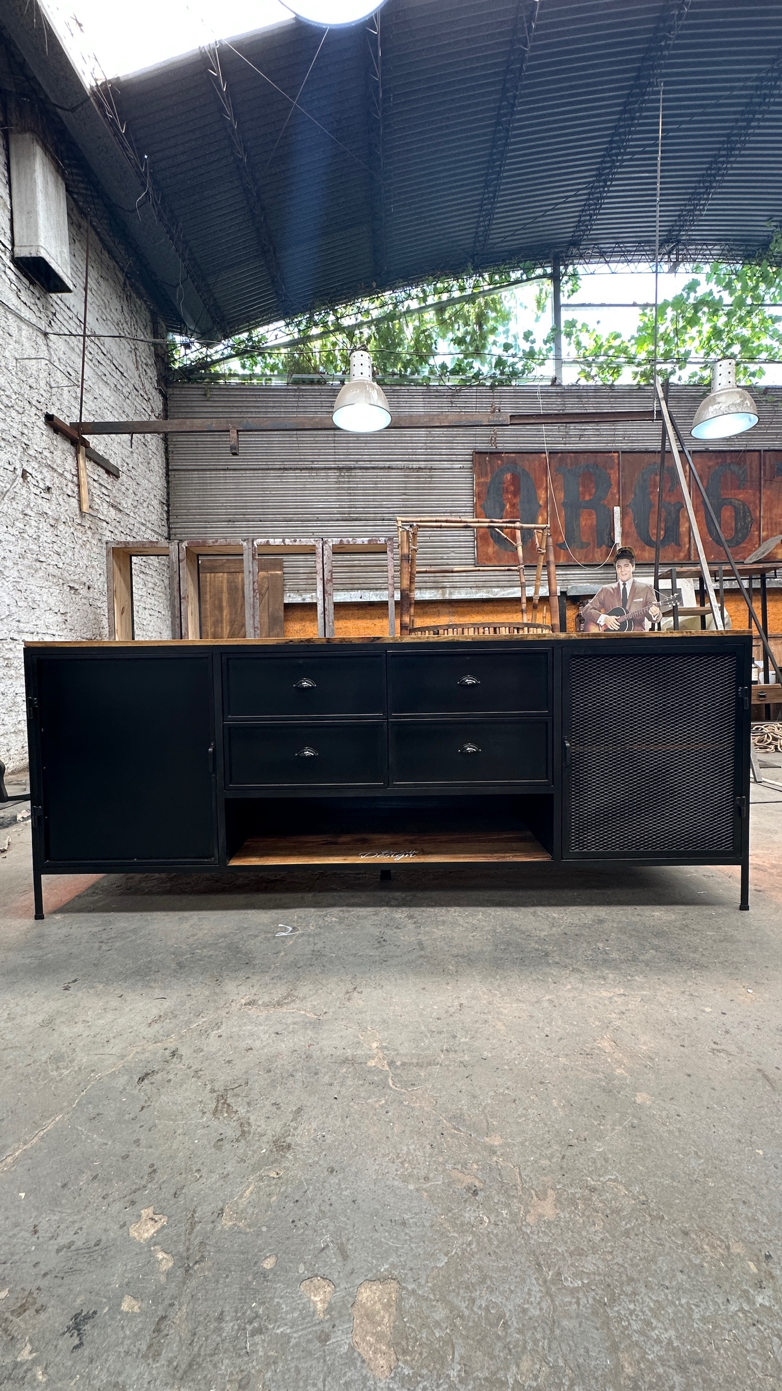 Mueble resto, con un interior de madera y un frenete de chapa y metal desplegable