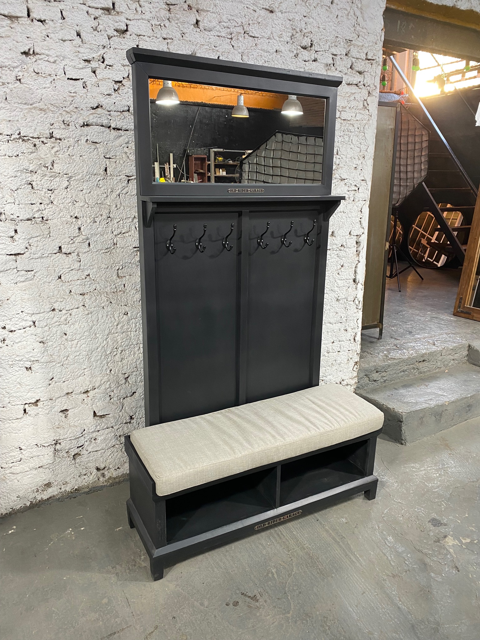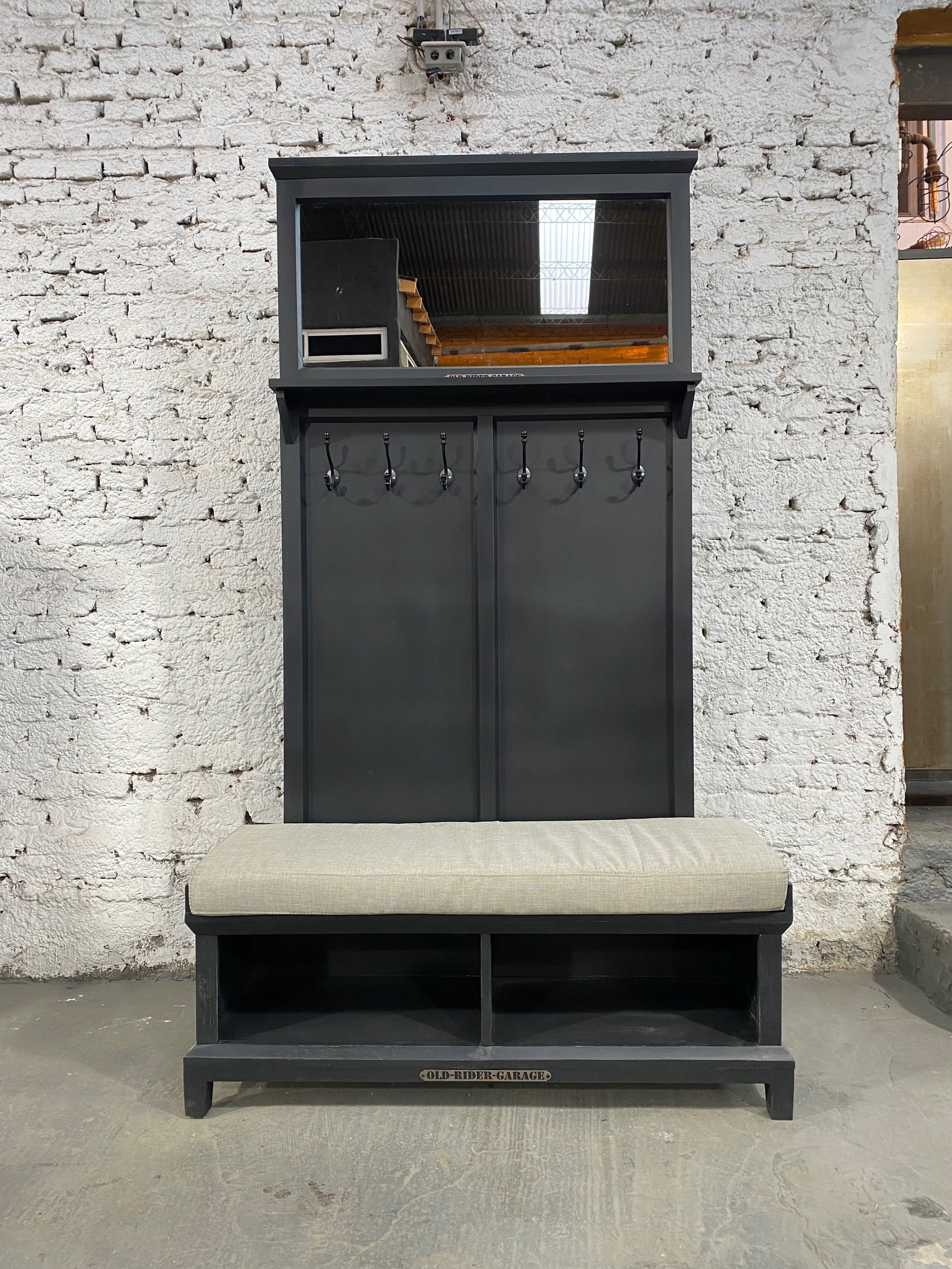 Perchero recibidor con espejo, zapatero y almohadón soft. Diseños personalizados.