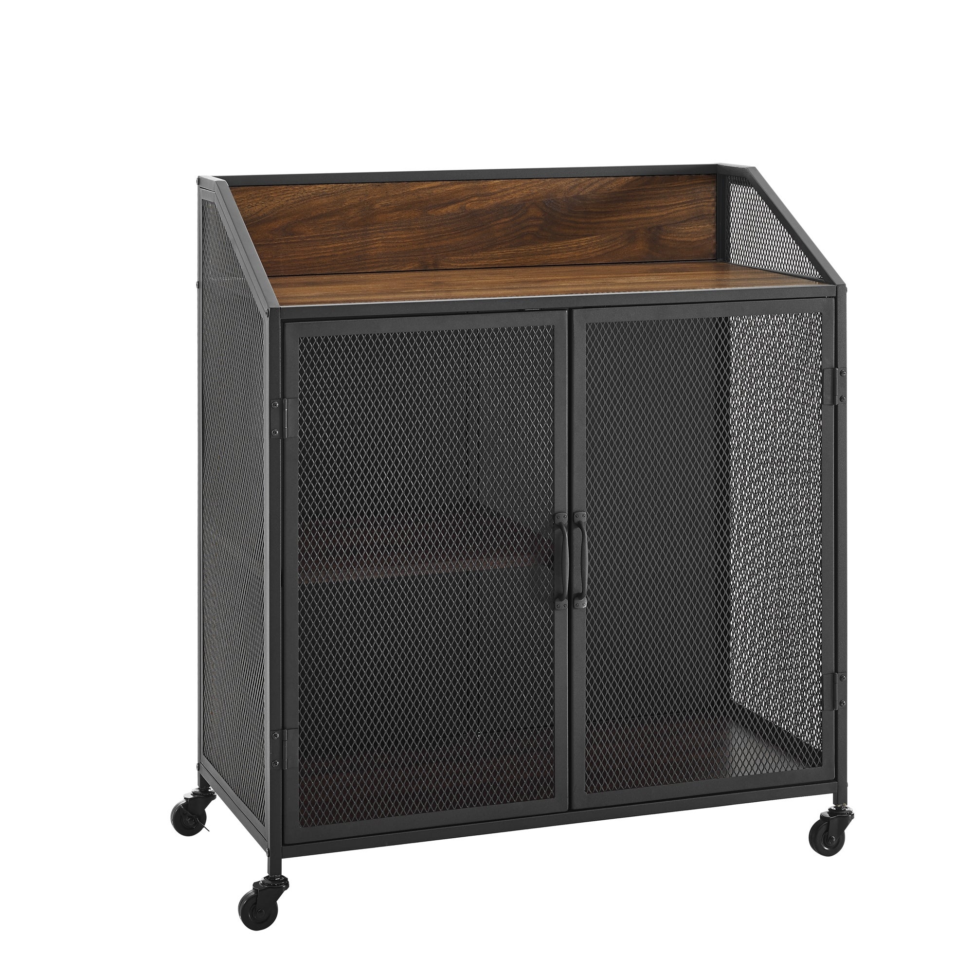 Mueble recibidor, metal desplegado, hierro y madera, con ruedas