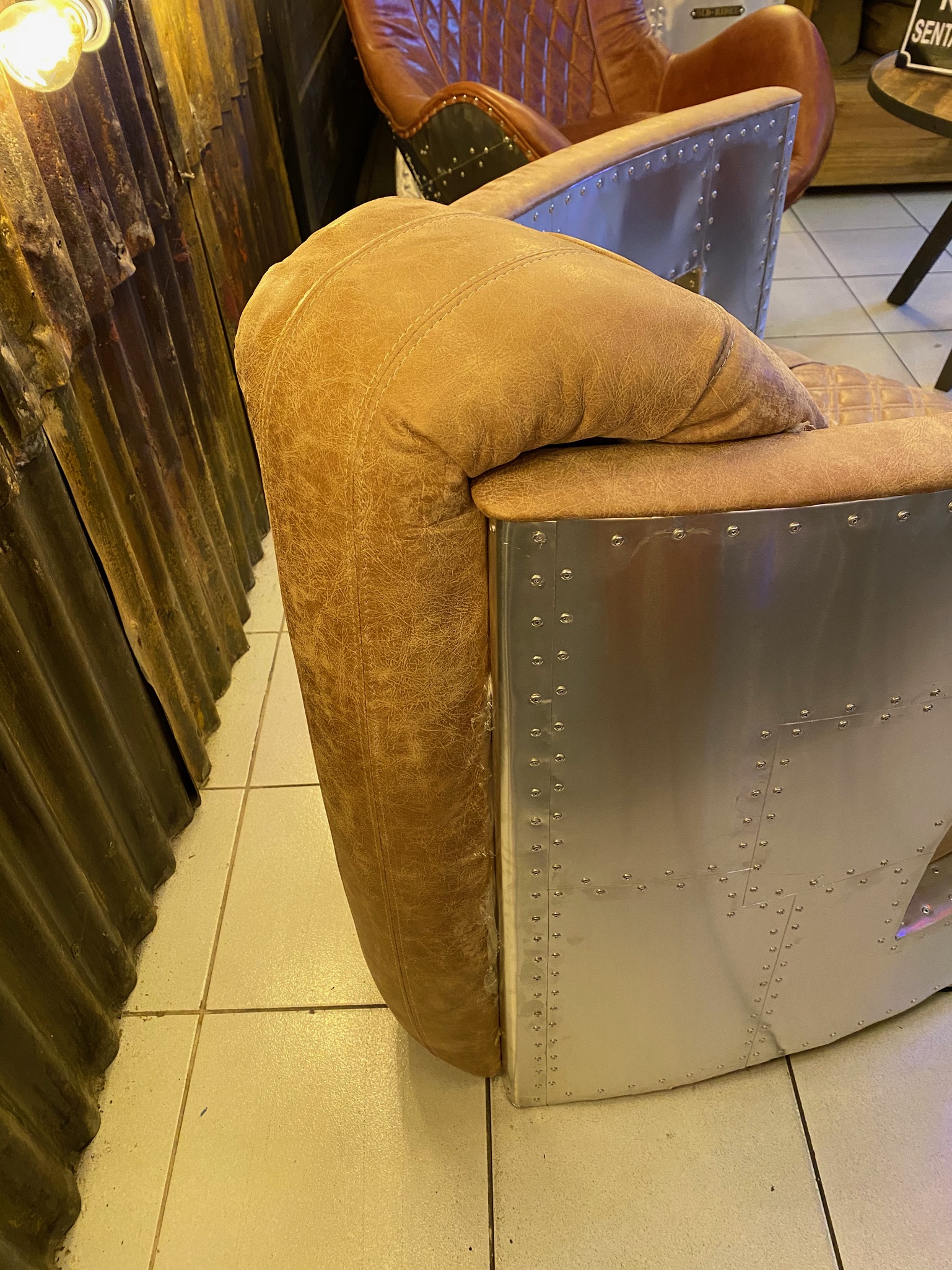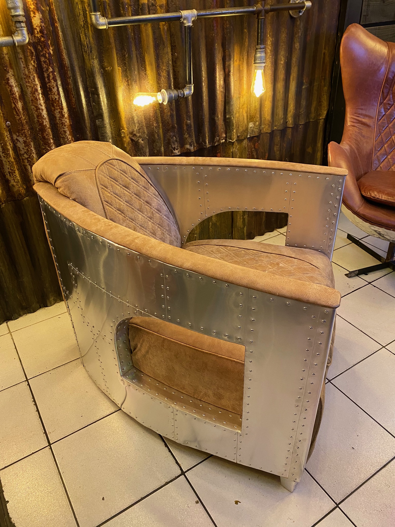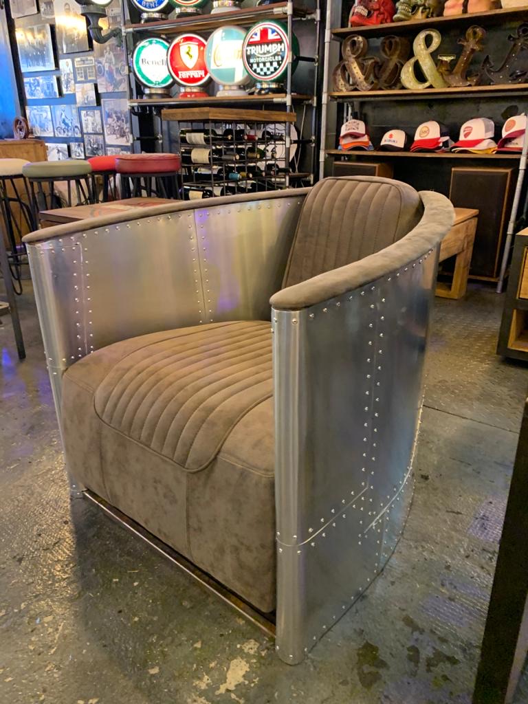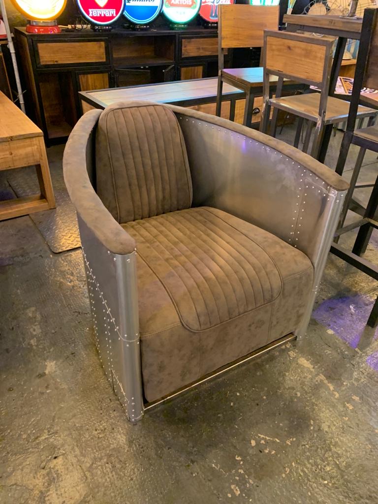 Sillon individual, cubierto de aluminio remachado, tapizado y color personalizados.