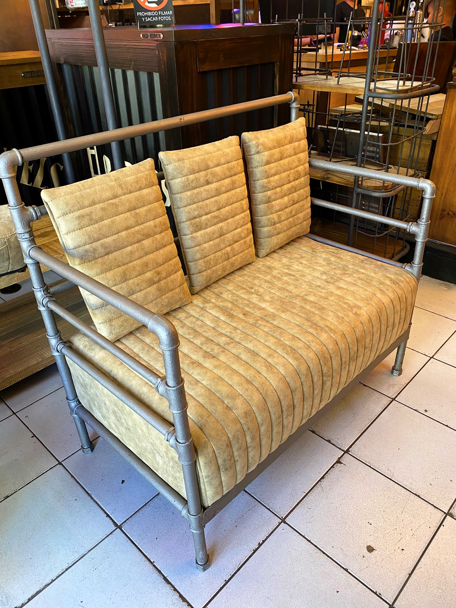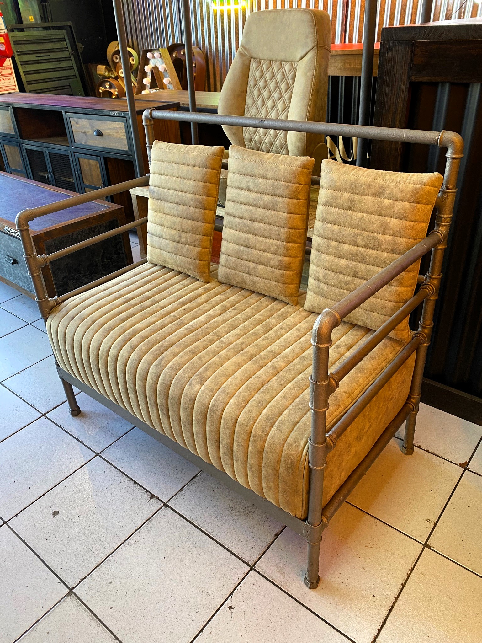 Sillon de 2 cuerpos con soporte hecho de caño de agua