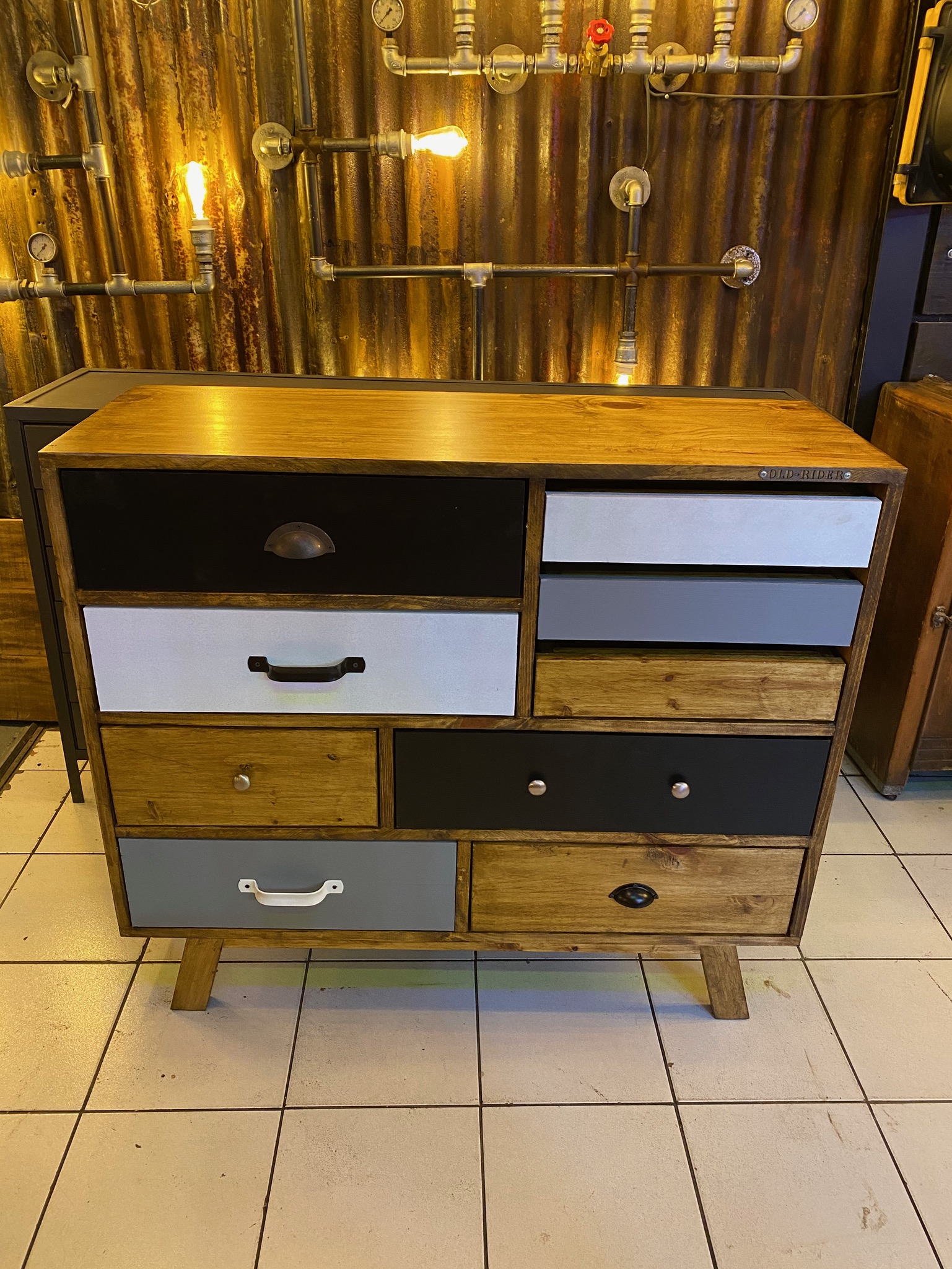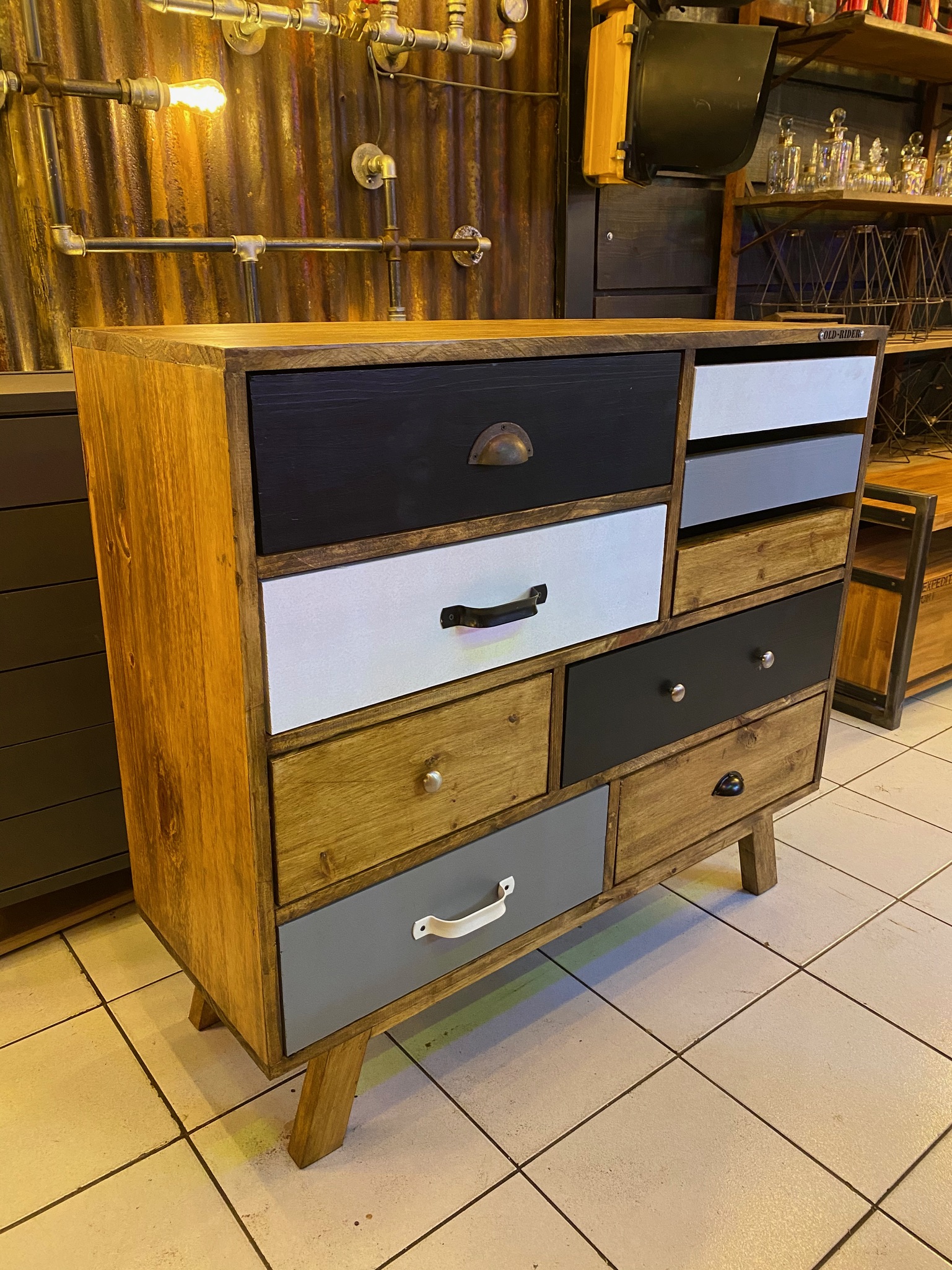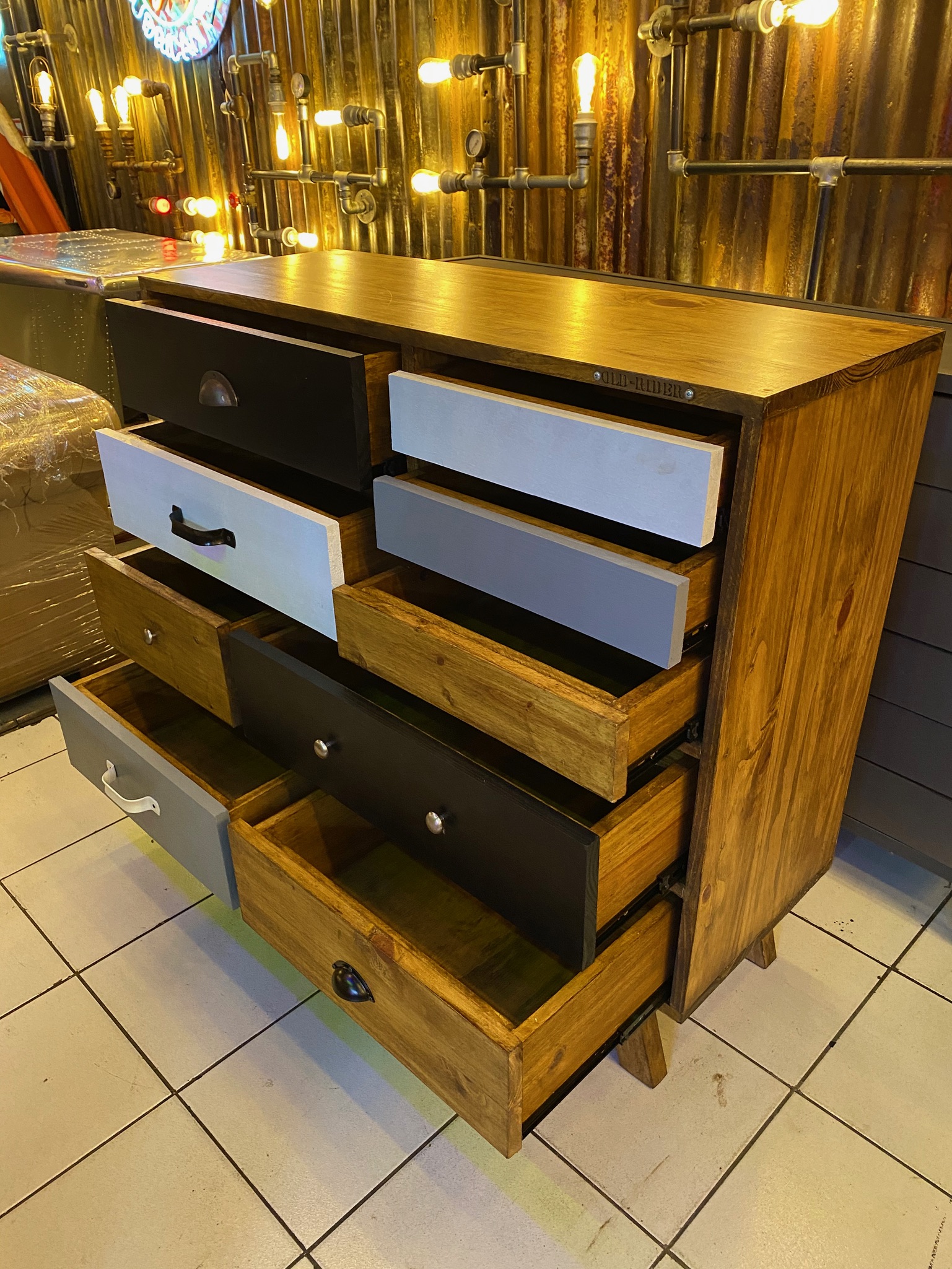 Cajonera de madera full con colores, manijas y detalles a eleccion.