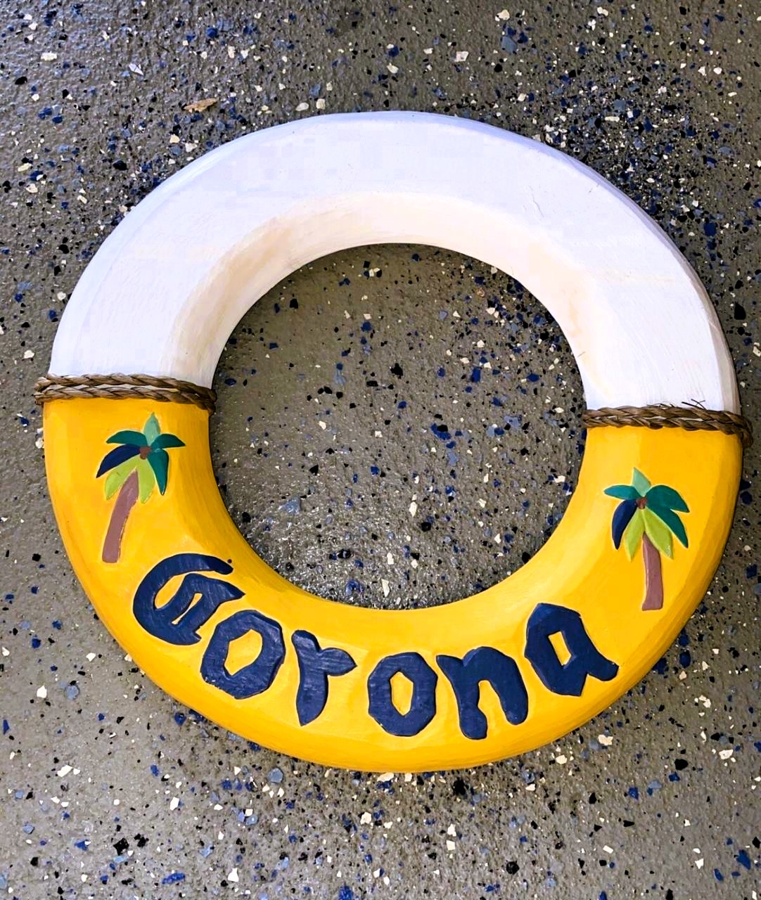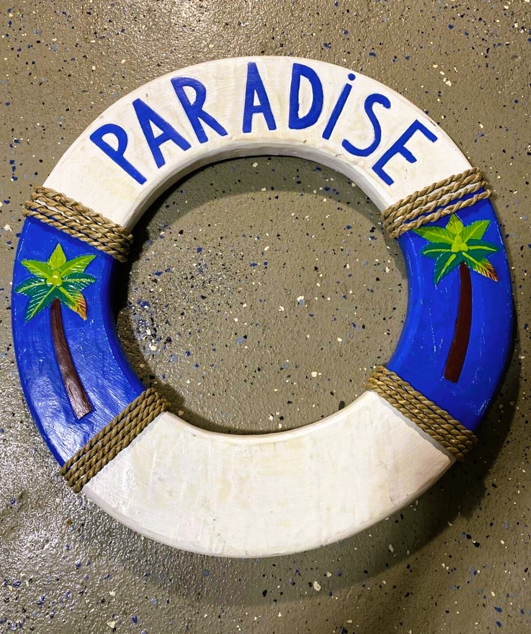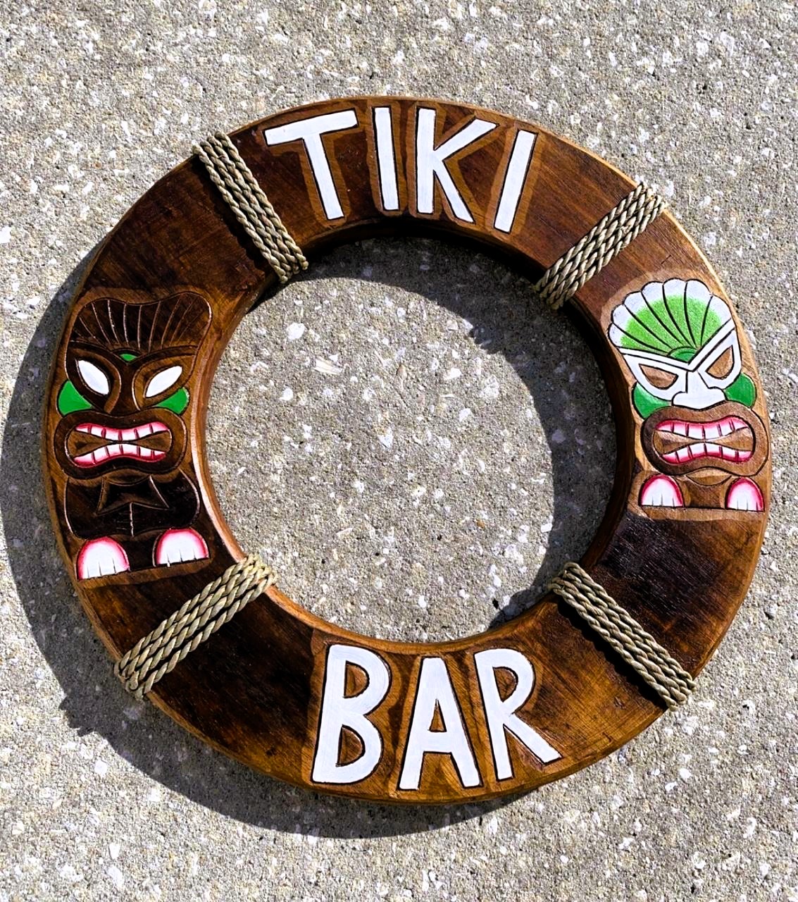 Carteles personalizados para bar TIki estilo salvavidas y remos con escrituras y dibujos.