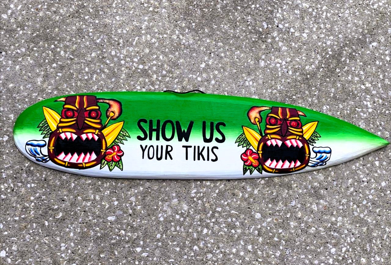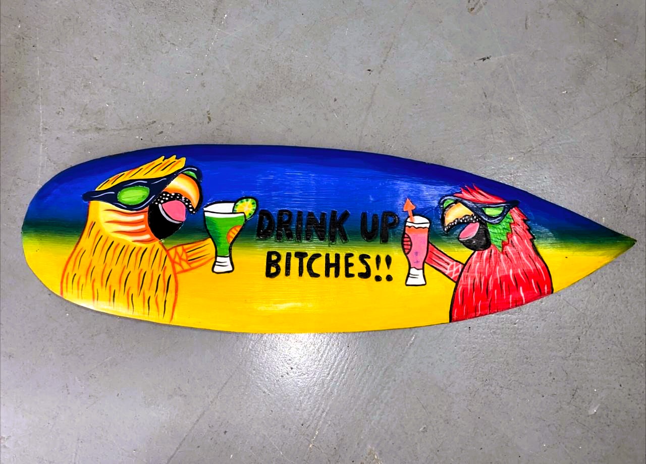 Carteles personalizados para bar TIki estilo tablas mordidas o enteras con escrituras y dibujos.
