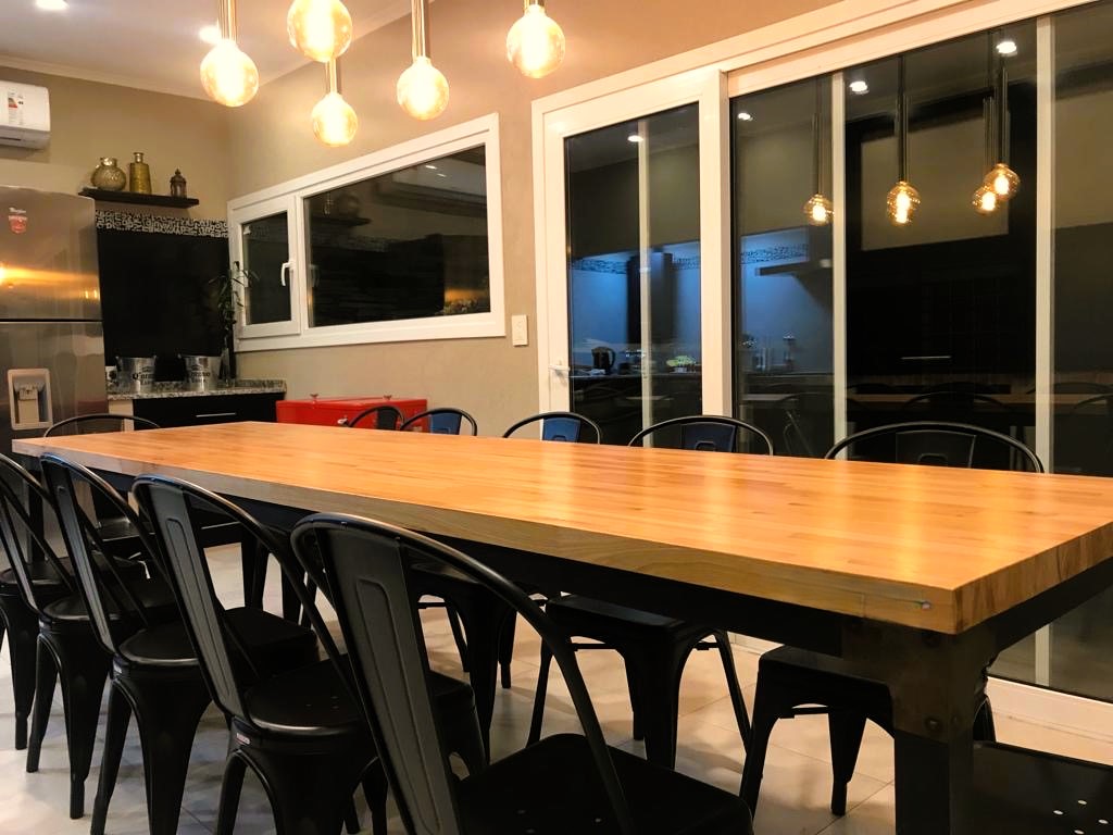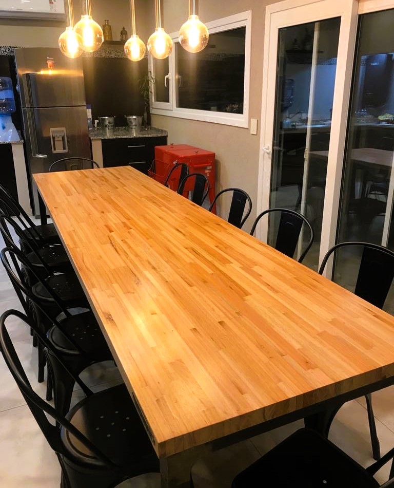Meson de comedor para 10 sillas. Base de madera con pies de hierro.