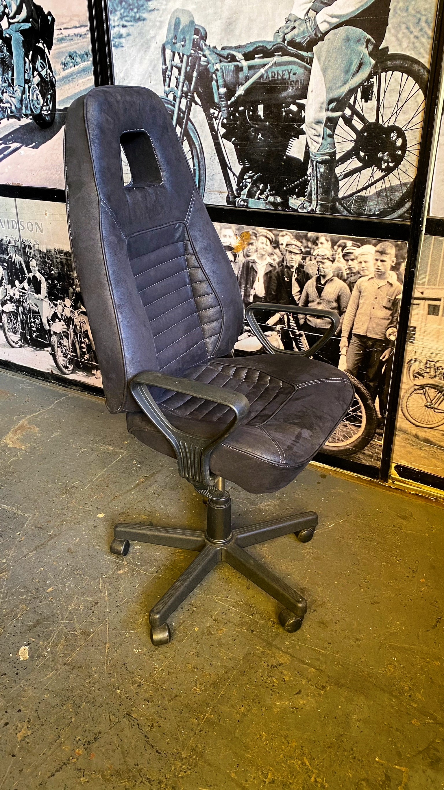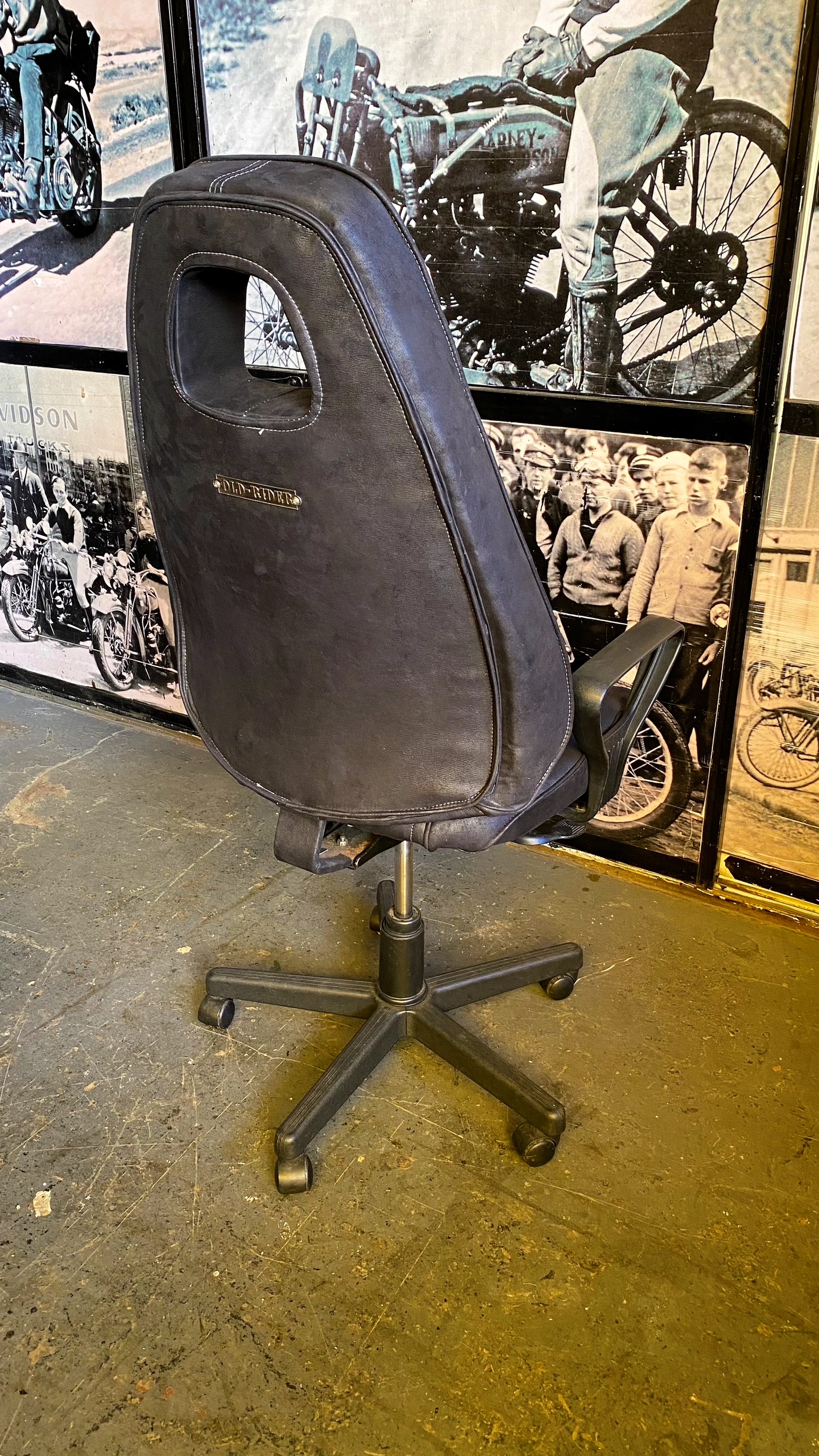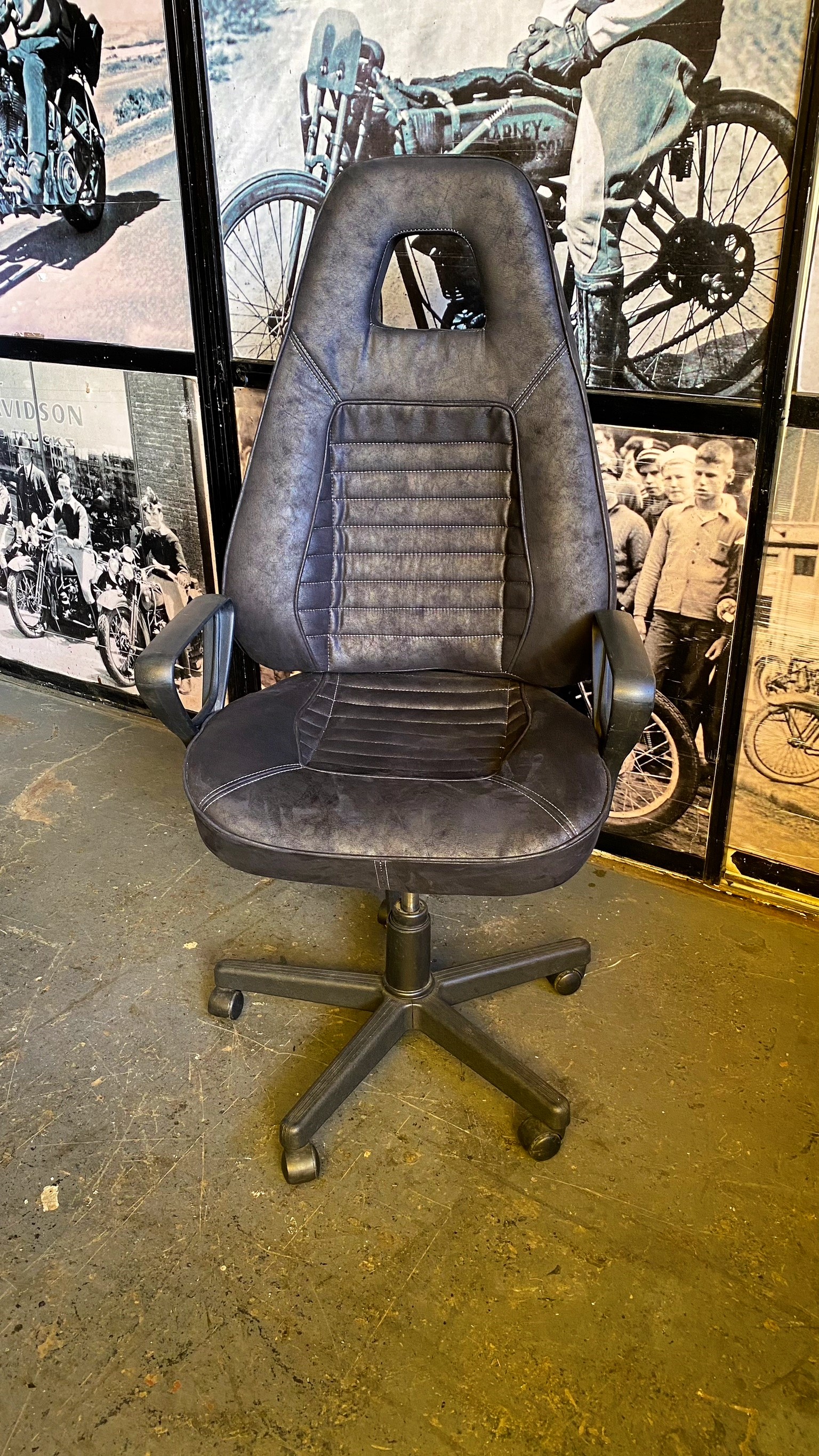 Silla con diseño tipo deportiva y tapizado en cuero.