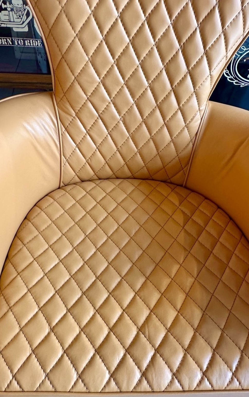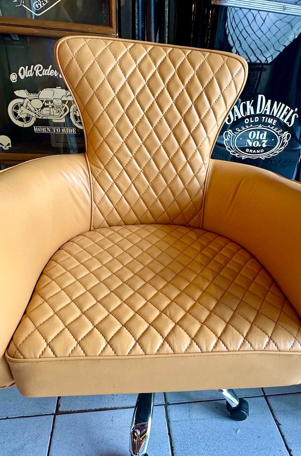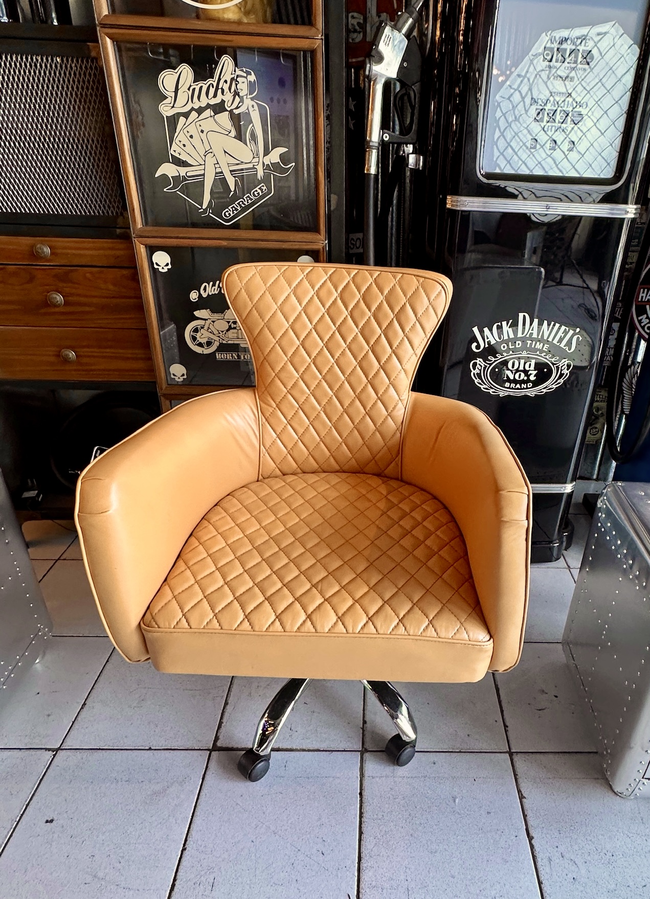 Sillón de escritorio de cuero vacuno cubierto de aluminio remachado.