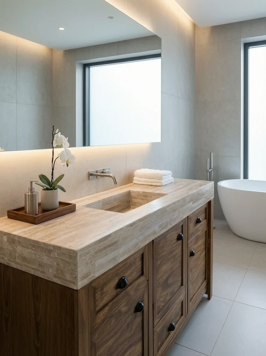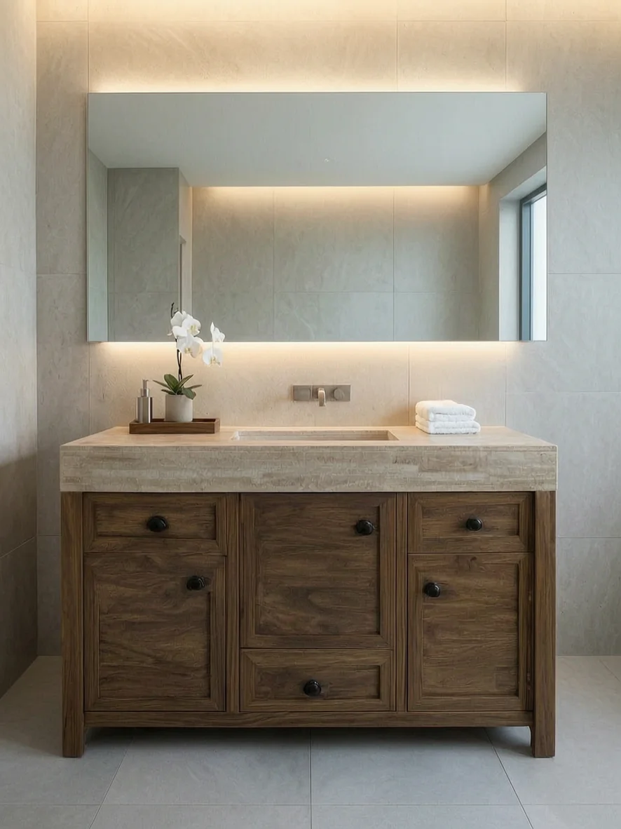 Este sofisticado vanitory combina funcionalidad y diseño contemporáneo con su robusta y pulcra tapa de piedra natural. Sus líneas limpias y materiales de alta calidad lo hacen ideal para cualquier baño moderno. Ofrece una solución elegante y duradera para organizar sus artículos de tocador y embellecer su espacio.